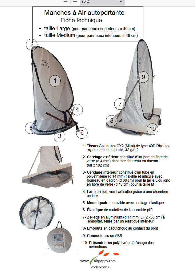 Cette manche à air est disponible en taille Médium pour panneaux jusqu'à 40 cm et taille Large pour panneaux de 41 à 55 cm. Elle est prévue pour des épaisseurs de ponts de 4 à 15 cm.